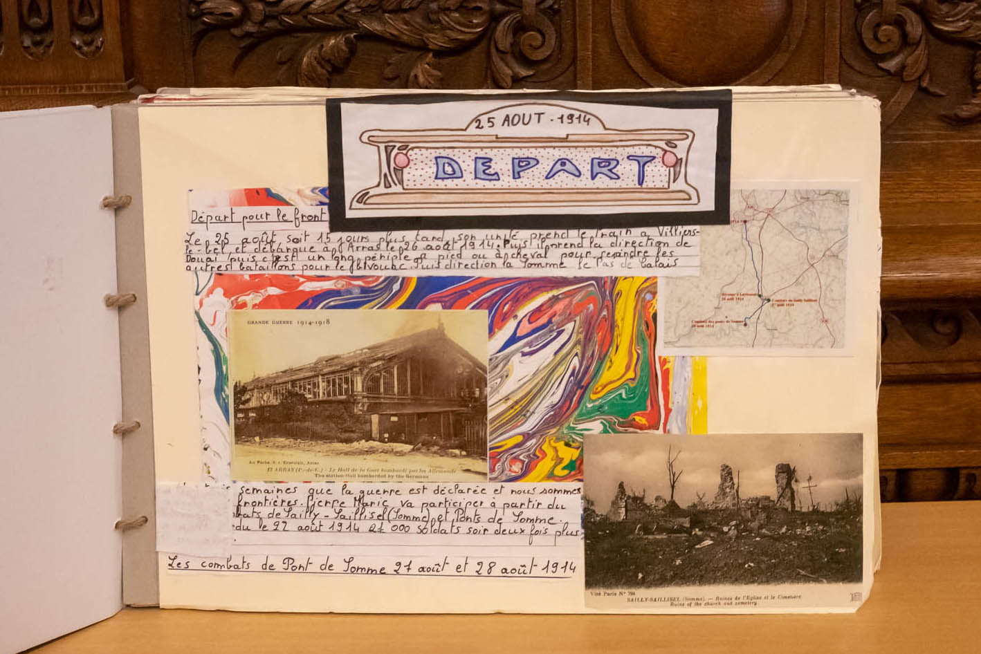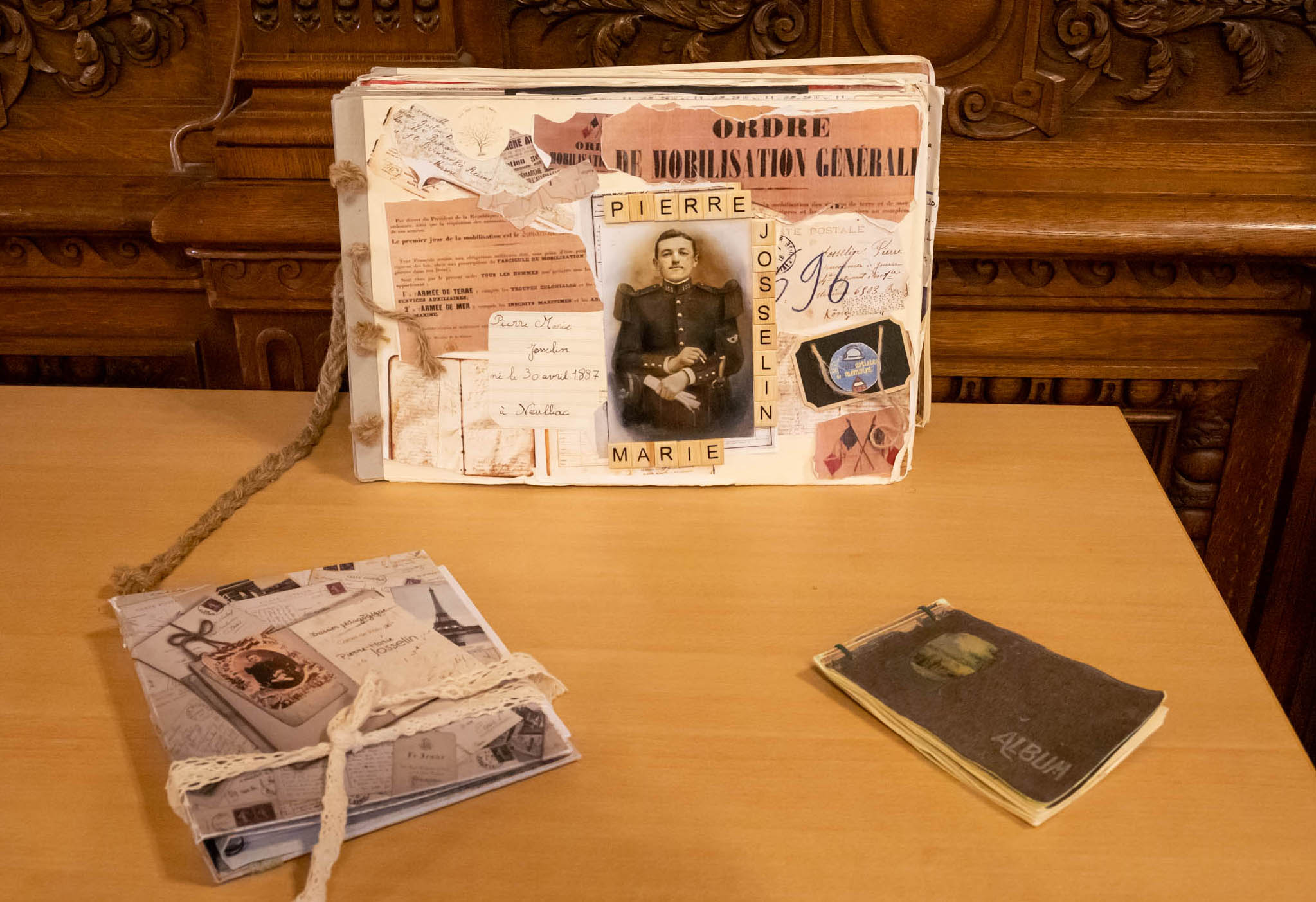 Au début nous avions le projet de remettre un carnet artistique mémoriel alliant histoire et arts graphiques, puis l’implication remarquable des élèves et des familles de l’école Saint-Joseph a fait germer l’envie de mettre des mots et des images sur l’histoire de nos poilus. Nous avions en effet mis en lumière Pierre Marie Jossselin, mais aussi treize autres poilus.