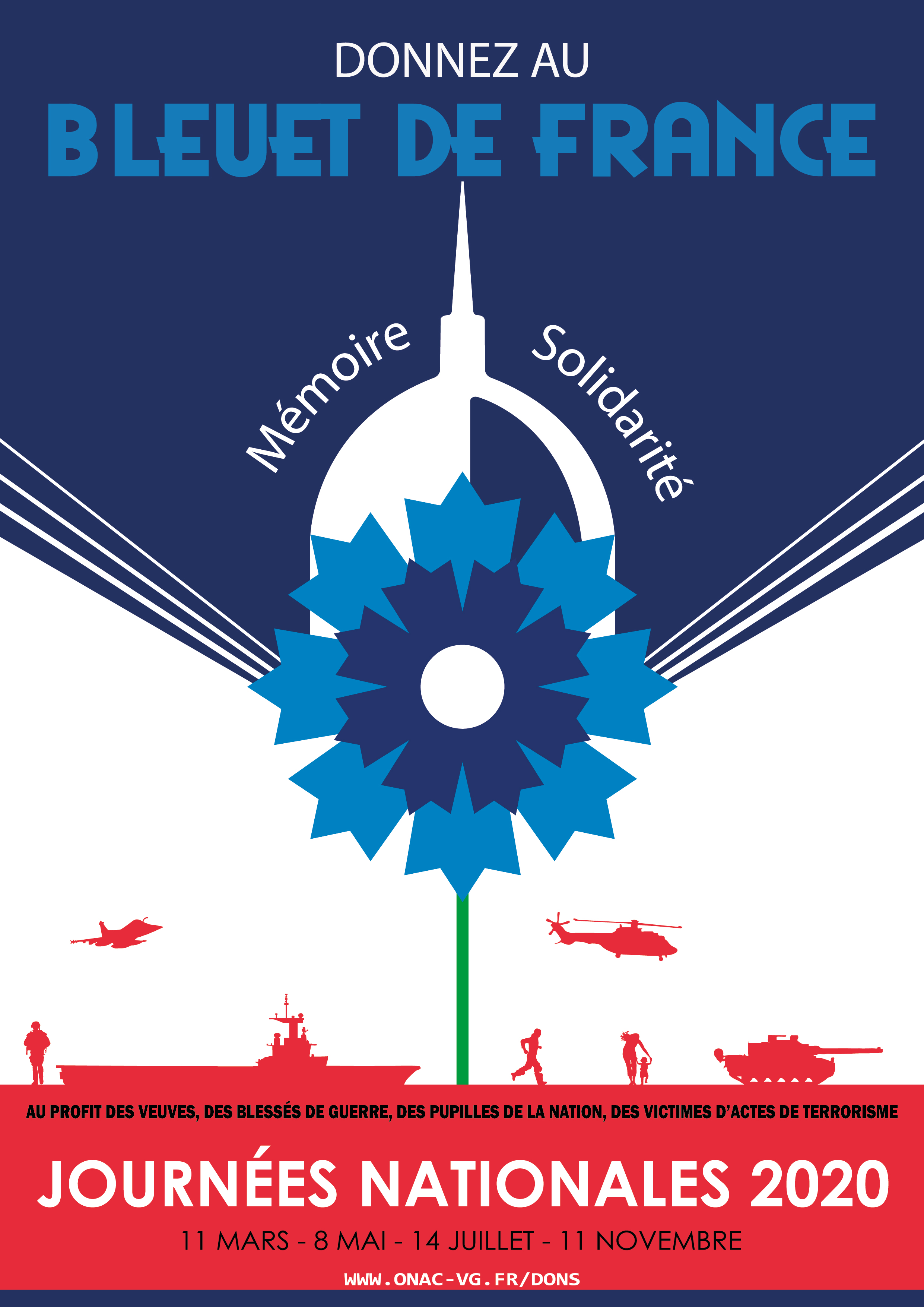 Depuis 1991, les Bleuet de France vient aussi en aide aux victimes d’acte de terrorisme. Cette mention est donc présente sur la nouvelle campagne.