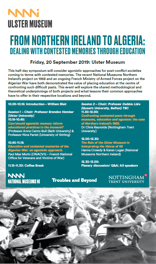 C’est à ces questions que ce colloque a tenté d’apporter des éléments de réponse, en mettant en parallèle deux initiatives singulières : celle de l’Office sur les mémoires plurielles de la guerre d’Algérie, et celle de l’Ulster Museum qui mène un travail de dialogue des mémoires du conflit nord-irlandais.