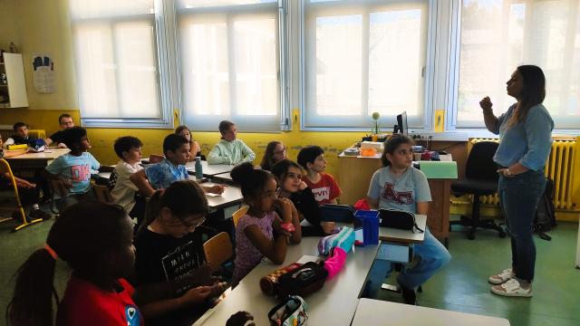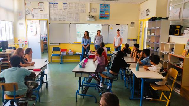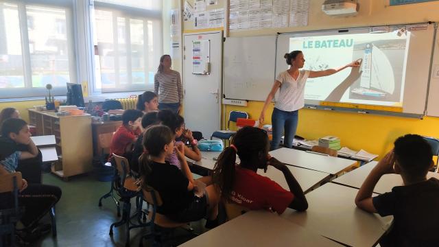 Des navigatrices présentent le Bleuet dans une école de Lanester