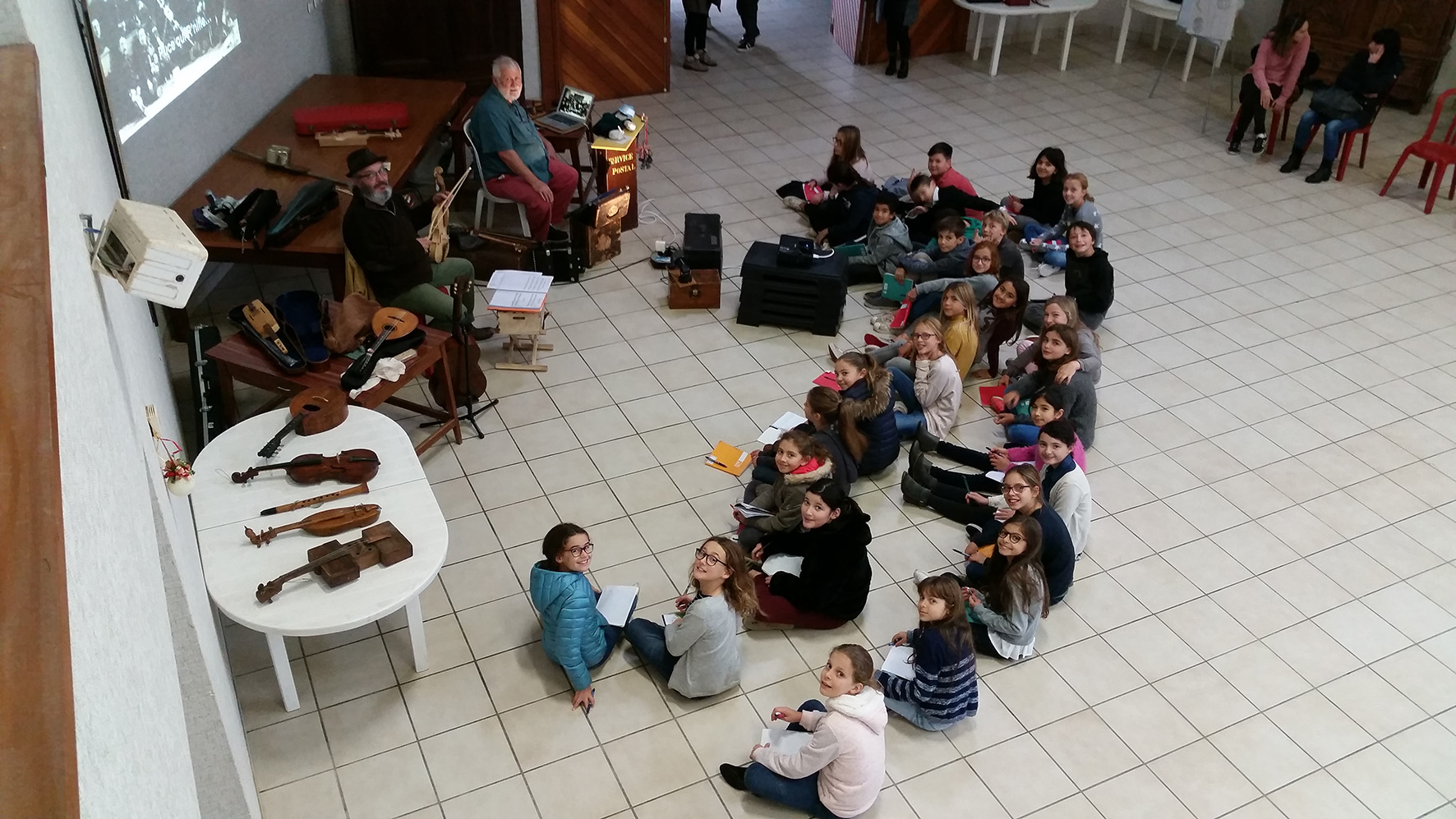 Le mardi 13 novembre 2018 : L’ONACVG a pu participer à une journée pédagogique à l’école Stella Maris d’Anglet en partenariat avec la compagnie « Les bras cassés ». Les élèves ont d’abord assisté à un spectacle sur la musique pendant la Grande Guerre avant de participer à un atelier d’écriture de chanson. L’après-midi était consacré à la conception d’instruments de musique avec les « moyens du bord » comme dans les tranchées puis s’est achevé par une mise en commun. Enfin durant la soirée, un spectacle grand public a été présenté à l’espace culturel Tivoli par Claude Ribouillault, ethnomusicologue gascon et Didier Oliver, musicien.