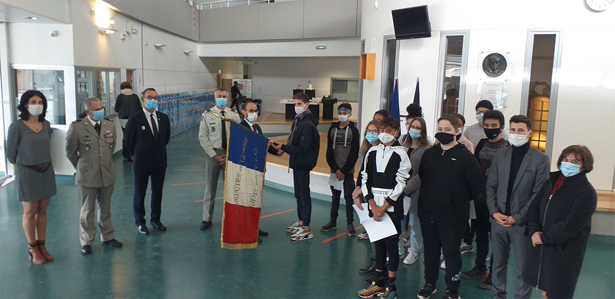 Aussi, lors de la journée nationale du 11 Novembre, organisée en format très restreint, seuls trois porte-drapeaux représentaient l’ensemble des associations du département pour rendre hommage à tous les morts pour la France. Parmi eux, une élève de la CDSG du Collège Manuel Azaña portait pour la première fois le drapeau de la Fédération des amputés de Guerre de Tarn-et-Garonne.
