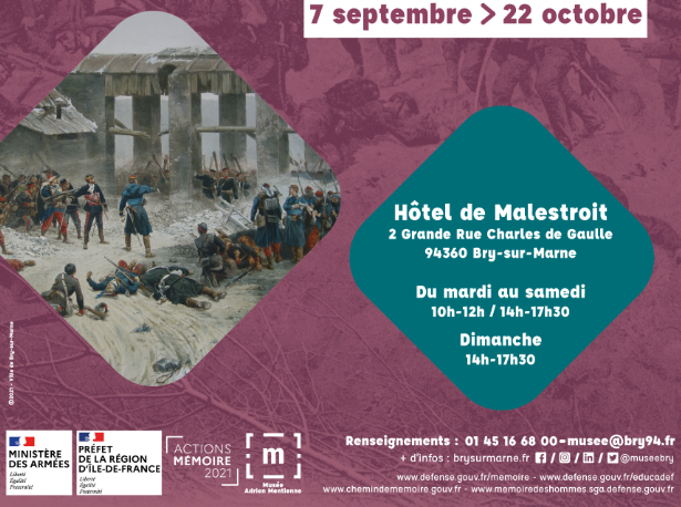 – La Ville de Bry-sur-Marne et le Musée municipal Adrien-Mentienne pour l’exposition « La Bataille de Champigny », qui se tiendra jusqu’au 4 juillet 2021 à l’Hôtel de Malestroit (Bry-sur-Marne). Cette proposition s’inscrit dans une politique mémorielle locale incluant de nombreuses actions autour du 150e anniversaire de la guerre de 1870-1871 (film, spectacles et actions pédagogiques sont en cours de programmation).