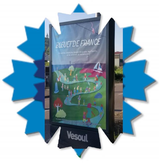 Disséminée aux quatre coins de la ville, cette campagne d’affichage sera visible jusqu’au 14 juillet. L’implication de la ville est de longue date, Vesoul faisant fidèlement un don au Bleuet de France chaque année !