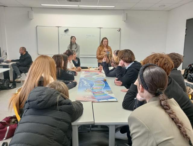 C’est Lorentina Novembrino, agent administratif de l’ONACVG, et Charline Nicolas, volontaire en service civique, qui ont proposé le jeu de l’oie de la citoyenneté aux élèves de troisième et de seconde. Ceux-ci ont pu mettre en pratique leur esprit de coopération grâce à des questions de mémoire, d’histoire et de citoyenneté.