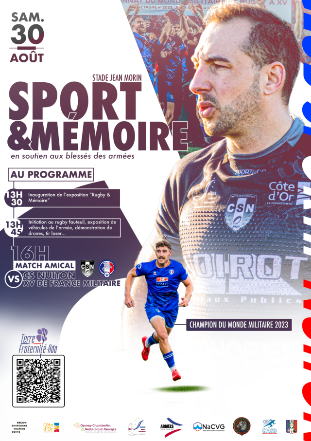 En apothéose de cette journée, un match de rugby de gala entre le XV militaire français – champion du monde 2023 – et le XV du CSN de Nuits-Saint-Georges. Avant-match, une belle Marseillaise chantée a capella par l’ensemble du public, un hakka par les polynésiens du régiment et un coup d’envoi fictif donné par le frère d’un soldat mort pour la France, deux militaires blessés et deux pupilles de la Nation mineurs.